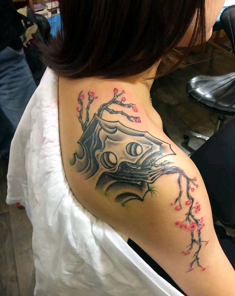 • 纹身吧推荐的披肩图腾半胛纹身图案作品展示