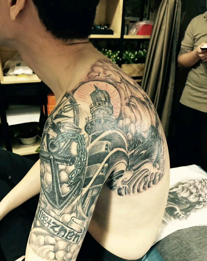 当前位置: 首页 >江苏省苏州市纹身店-昆山木鱼堂纹身工作室纹身图案>遮盖大臂完成纹身图片
