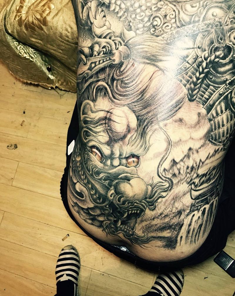 • 黑灰满背纹身图案