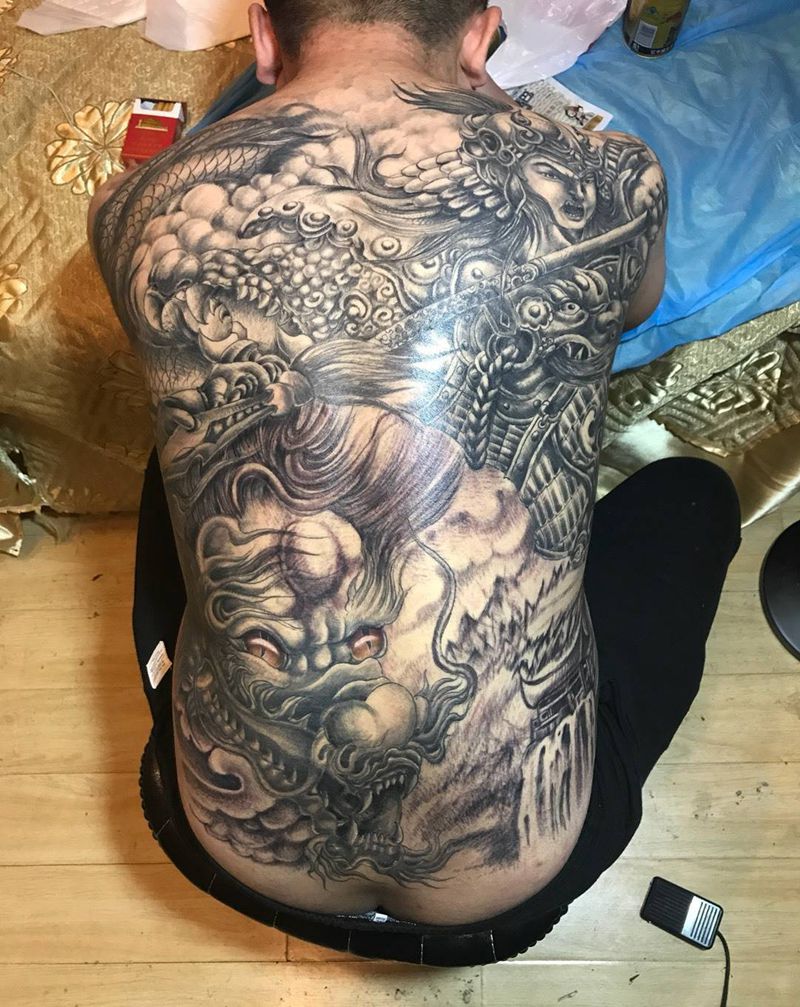 • 黑灰满背纹身图案