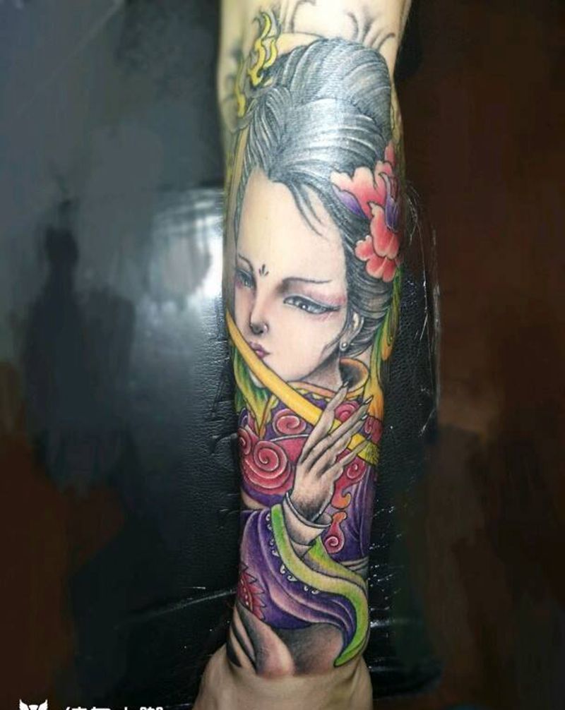 当前位置: 首页 >江苏省苏州市纹身店-昆山木鱼堂纹身工作室纹身图案>包小臂艺姬纹身图片