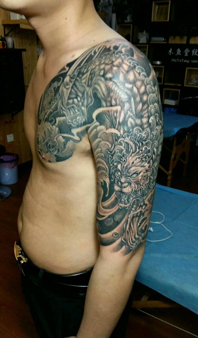 当前位置: 首页 >江苏省苏州市纹身店-昆山木鱼堂纹身工作室纹身图案>半甲貔貅完成…纹身图片