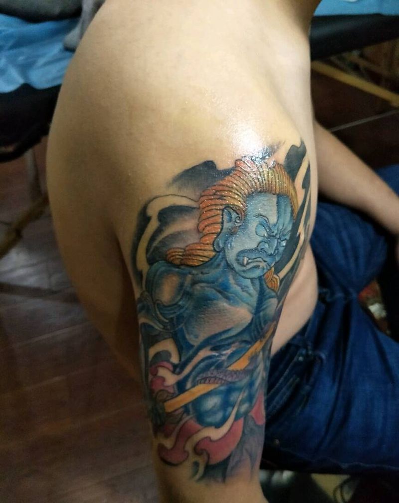 当前位置: 首页 >江苏省苏州市纹身店-昆山木鱼堂纹身工作室纹身图案>大臂不动明王纹身图片
