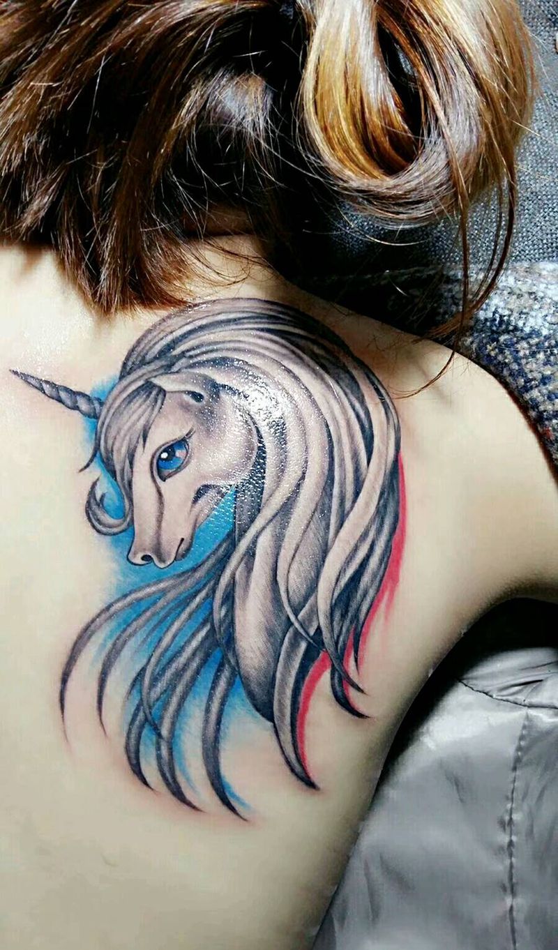 当前位置: 首页 >江苏省苏州市纹身店-昆山木鱼堂纹身工作室纹身图案>美女后背独角兽纹身图片
