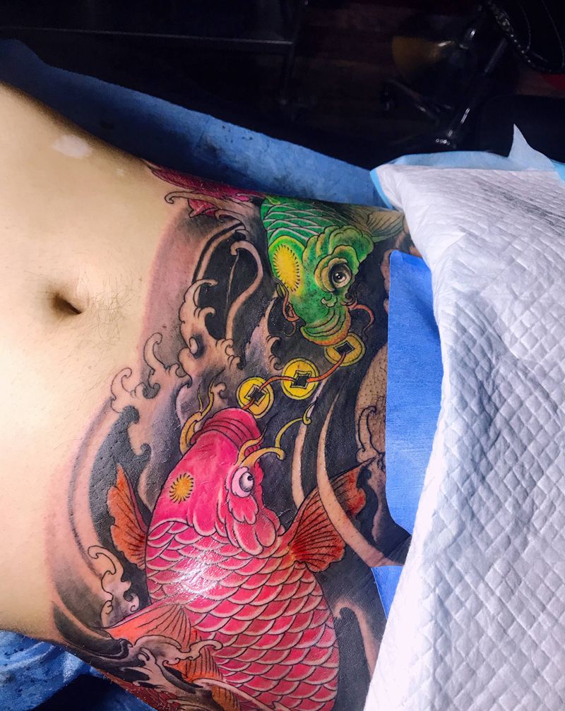 当前位置: 首页 >江苏省苏州市纹身店-昆山木鱼堂纹身工作室纹身图案>遮盖白癜风皮肤病纹身图片_胸部腰部新传统纹身图案