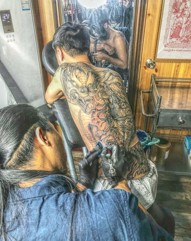 • 黑灰满背纹身图案
