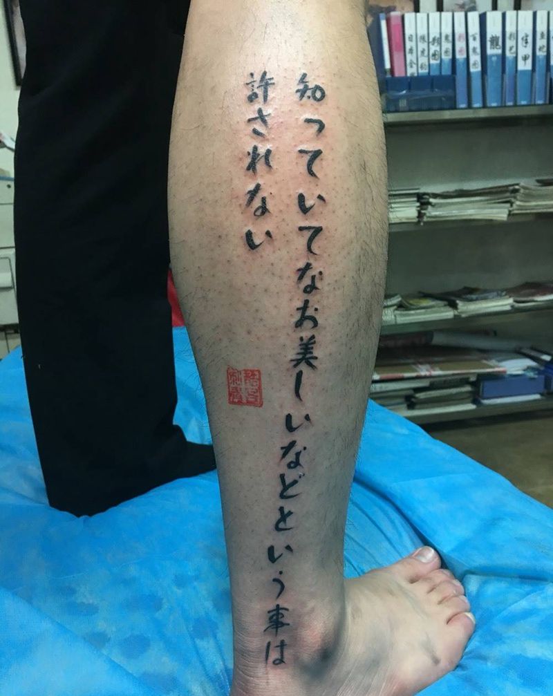 当前位置: 首页 >江苏省苏州市纹身店-吴江酷客纹身纹身图案>字纹身图片_成品腿部传统字符纹身图案