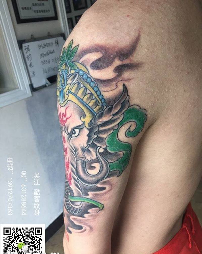 当前位置: 首页 >江苏省苏州市纹身店-吴江酷客纹身纹身图案>象神纹身图片_成品手臂传统动物纹身图案