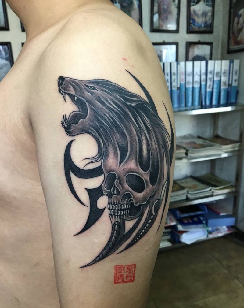 • 纹身吧推荐的披肩图腾半胛纹身图案作品展示