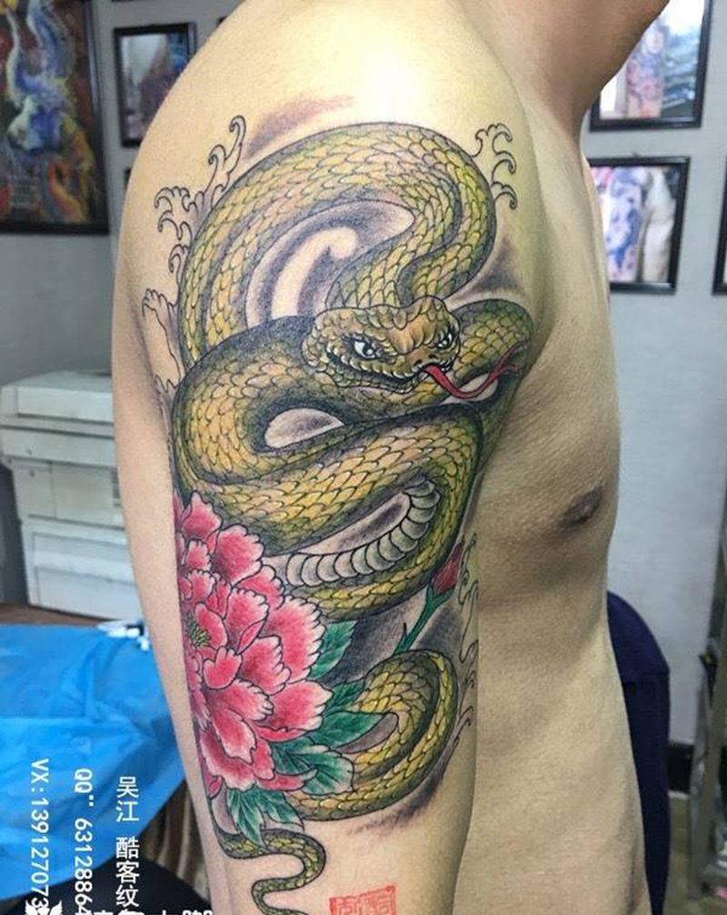 当前位置: 首页 >江苏省苏州市纹身店-吴江酷客纹身纹身图案>金蟒戏牡丹纹身图片