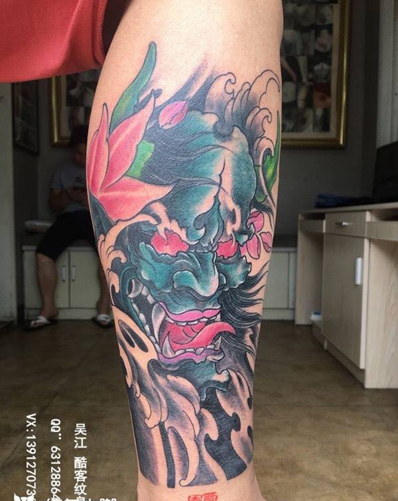 • T网红王老大花腿龙纹身图片_腿部新传统纹身图案