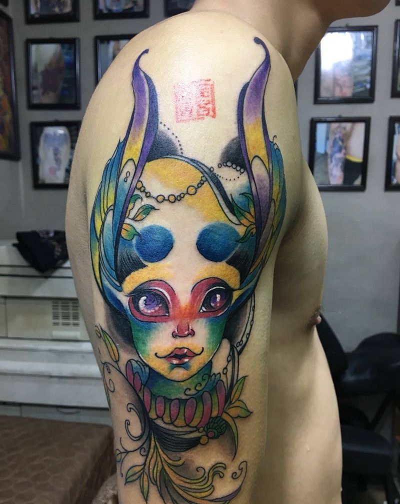 • 纹身吧推荐的披肩图腾半胛纹身图案作品展示
