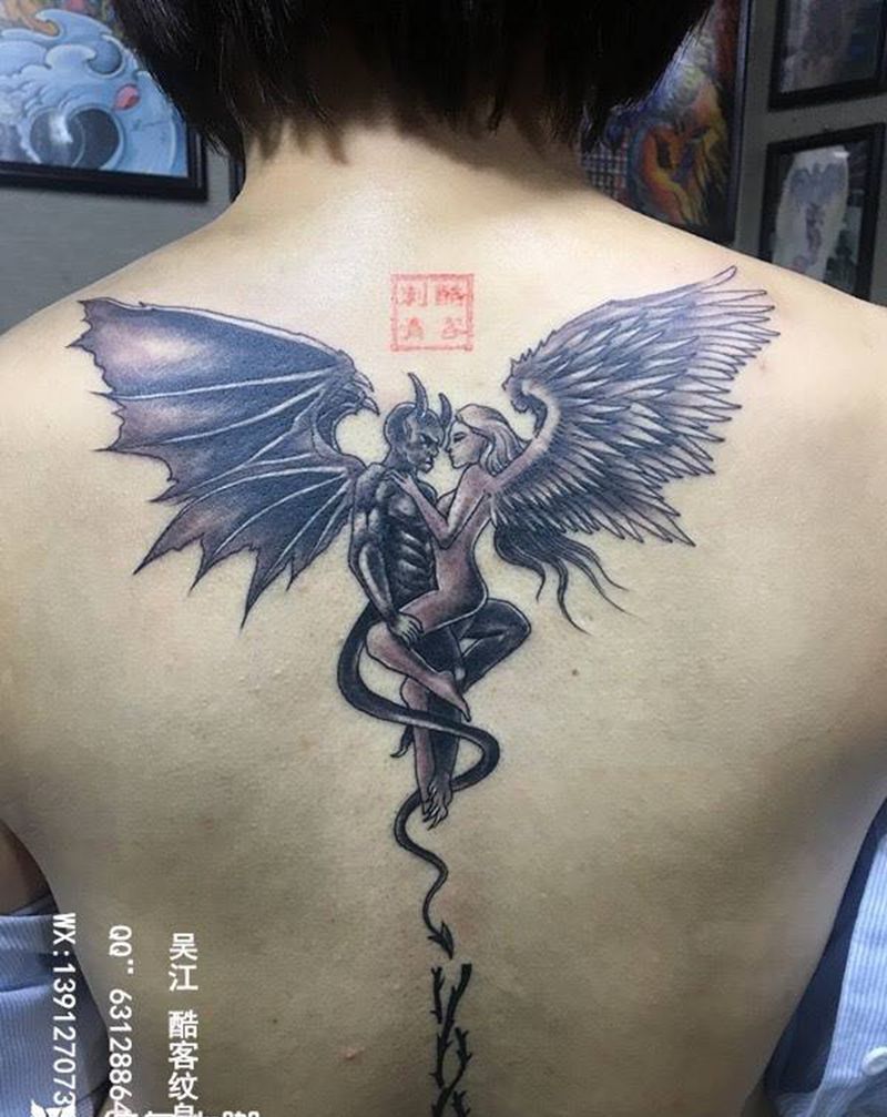 当前位置: 首页 >江苏省苏州市纹身店-吴江酷客纹身纹身图案>天使与恶魔纹身图片_背部新传统纹身图案