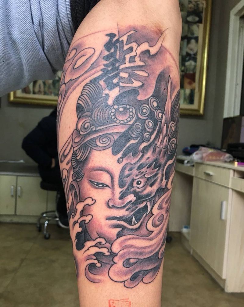 • T网红王老大花腿龙纹身图片_腿部新传统纹身图案