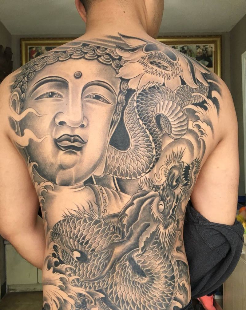 • T云龙九郎纹身图片_背部老传统云龙九郎纹身图案