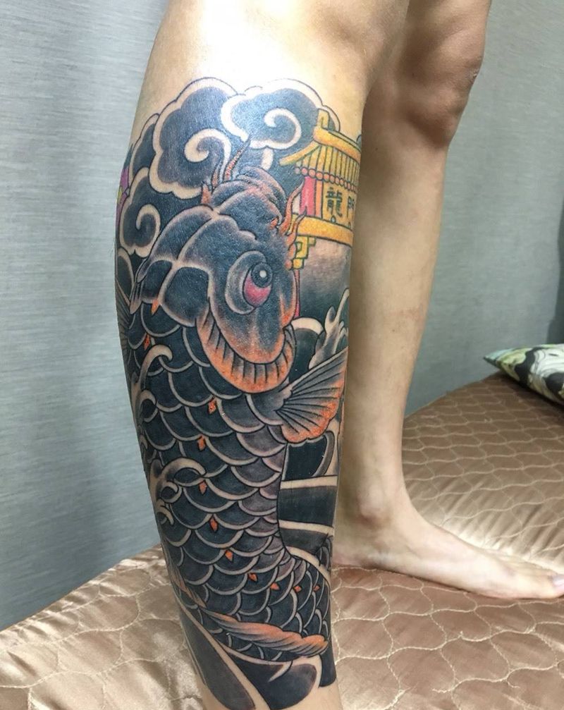 • T网红王老大花腿龙纹身图片_腿部新传统纹身图案