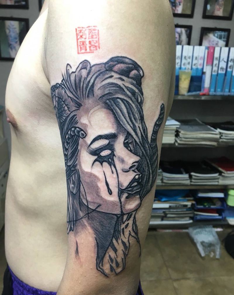 • 纹身吧推荐的披肩图腾半胛纹身图案作品展示