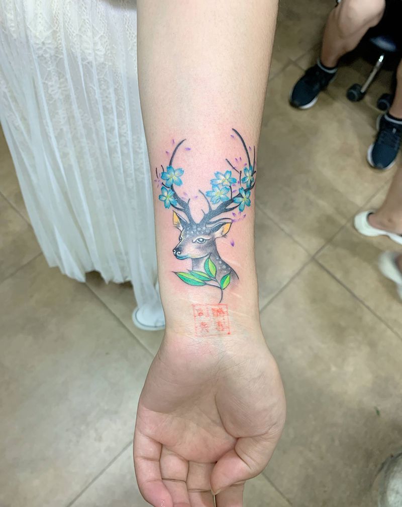 当前位置: 首页 >江苏省苏州市纹身店-吴江酷客纹身纹身图案>梅花鹿纹身图片_手臂新传统纹身图案