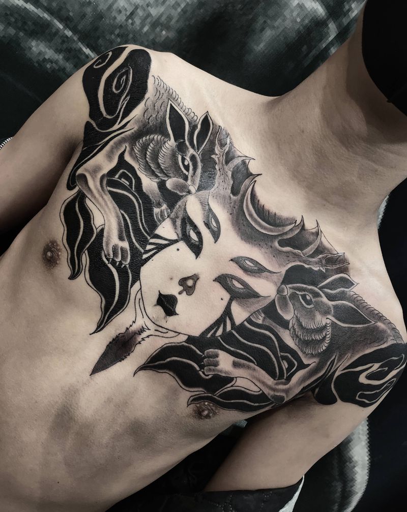 当前位置: 首页 >江苏省苏州市纹身店-七渡刺青艺术馆纹身图案>花胸纹身图片_胸部新传统纹身图案