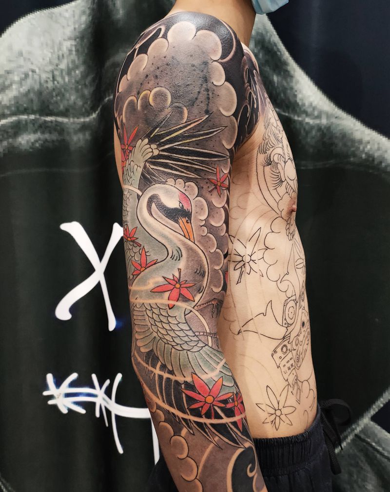 当前位置: 首页 >江苏省苏州市纹身店-七渡刺青艺术馆纹身图案>仙鹤纹身图片_手部老传统纹身图案