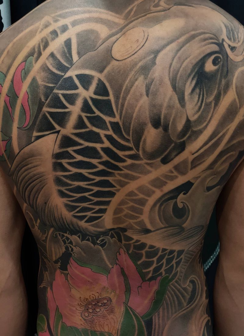 黑灰满背纹身图案