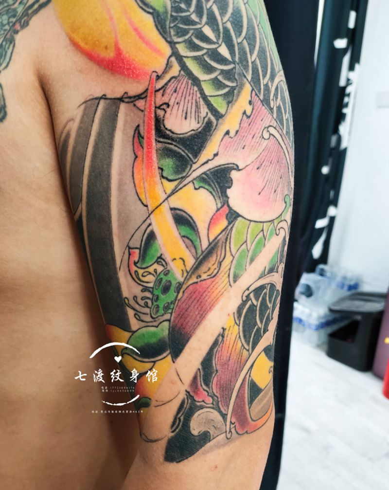 当前位置: 首页 >江苏省苏州市纹身店-七渡刺青艺术馆纹身图案>大臂鲤鱼纹身图片_手臂新传统纹身图案