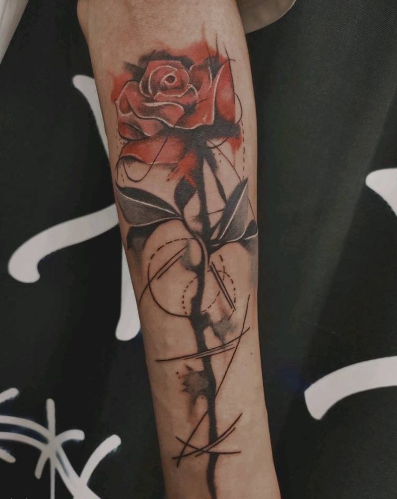 小臂玫瑰纹身图片_手臂水彩玫瑰花纹身图案