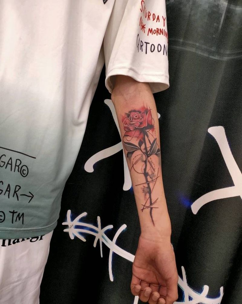 小臂玫瑰纹身图片_手臂水彩玫瑰花纹身图案