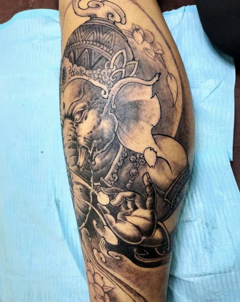 当前位置: 首页 >江苏省苏州市纹身店-七渡刺青艺术馆纹身图案>小腿象神纹身图片_腿部老传统象神纹身图案