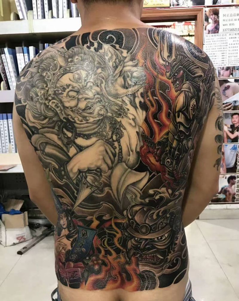当前位置: 首页 >江苏省苏州市纹身店-阿正刺青网红总店纹身图案>不动明王龙王大后背纹身图片_背部腿部老传统水墨龙王鲤鱼越龙门不动明王纹身图案