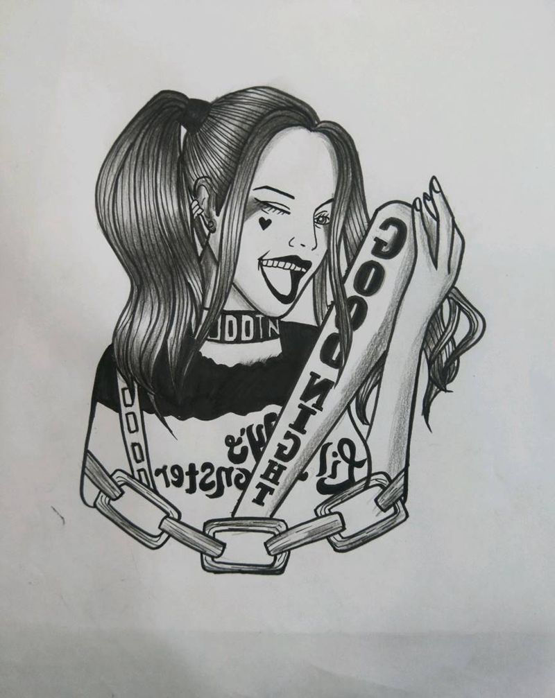 原创 小丑女 哈利奎因纹身图片_腿部纹身图案