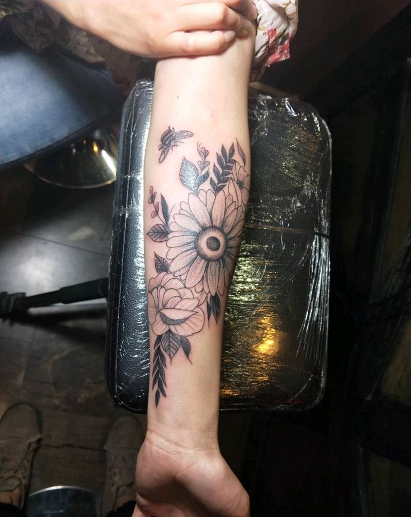 小臂内侧小花臂纹身图片_手部植物小清新纹身图案