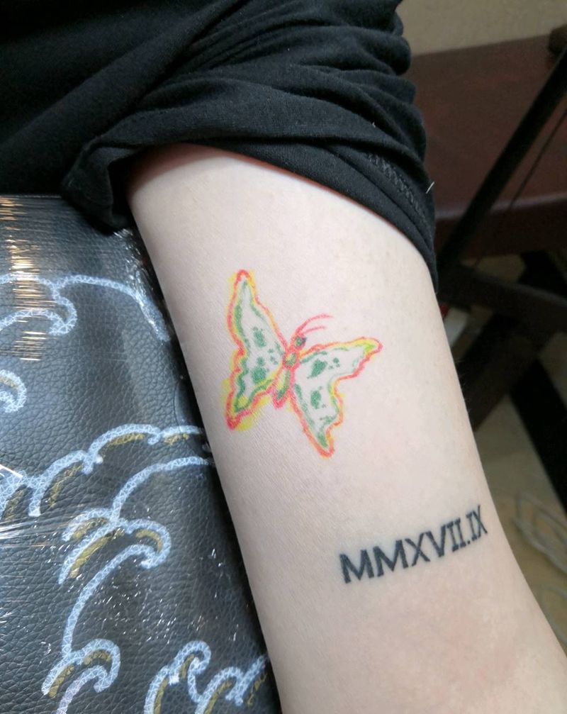 当前位置: 首页 >江苏省盐城市纹身店-十三刺青纹身图案>花蝴蝶纹身图片_手臂水彩纹身图案