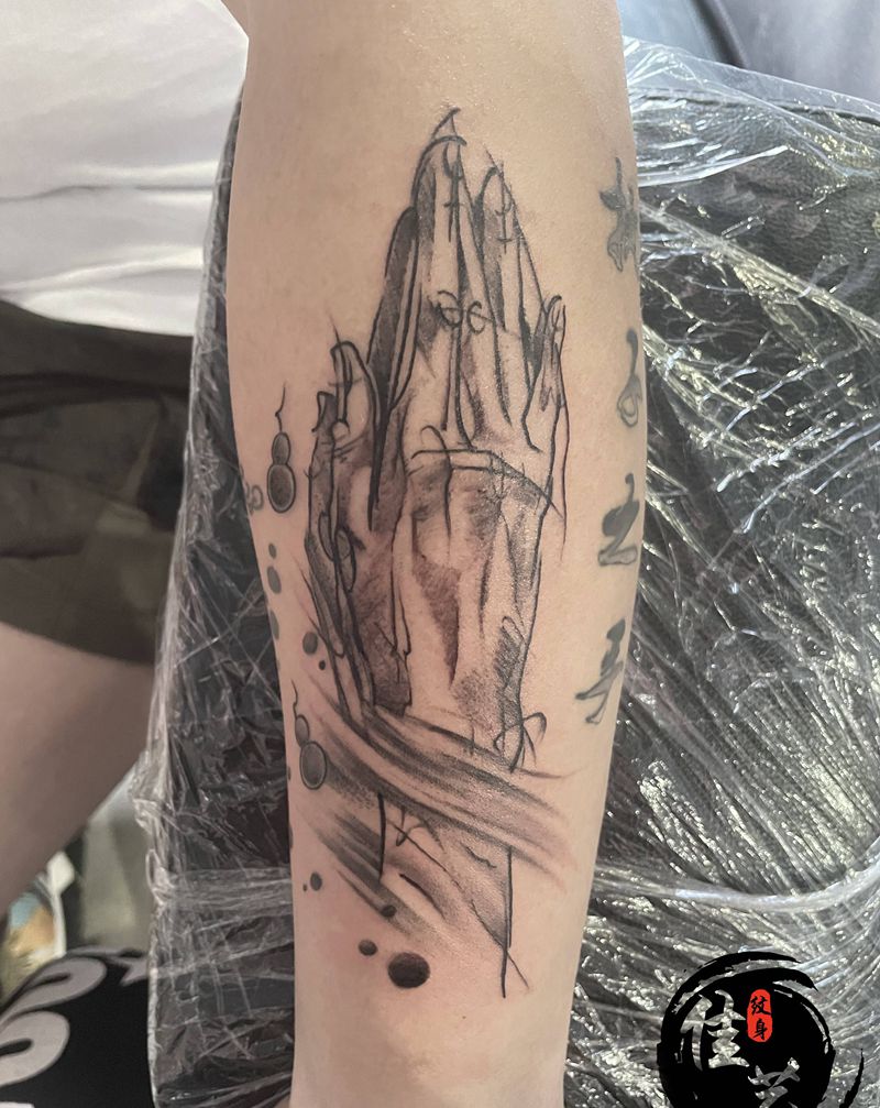 当前位置: 首页 >江苏省盐城市纹身店-佳艺纹身纹身图案>执子之手,与子偕老纹身图片_手臂纹身图案