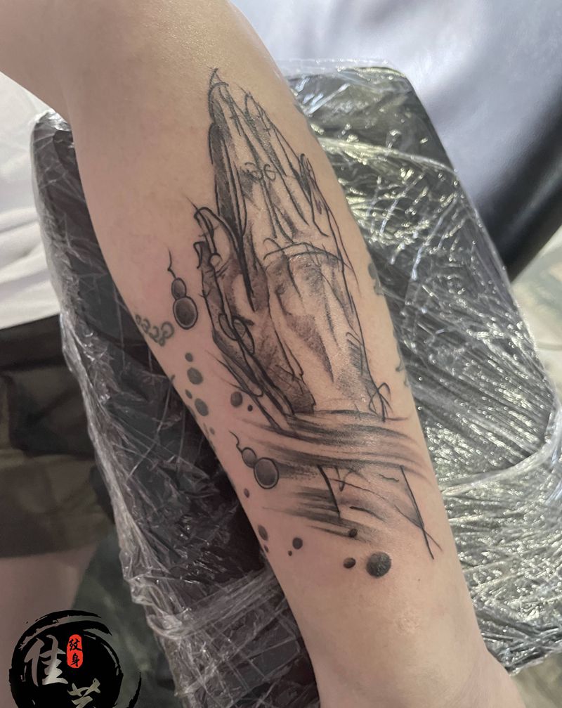 当前位置: 首页 >江苏省盐城市纹身店-佳艺纹身纹身图案>执子之手,与子偕老纹身图片_手臂纹身图案