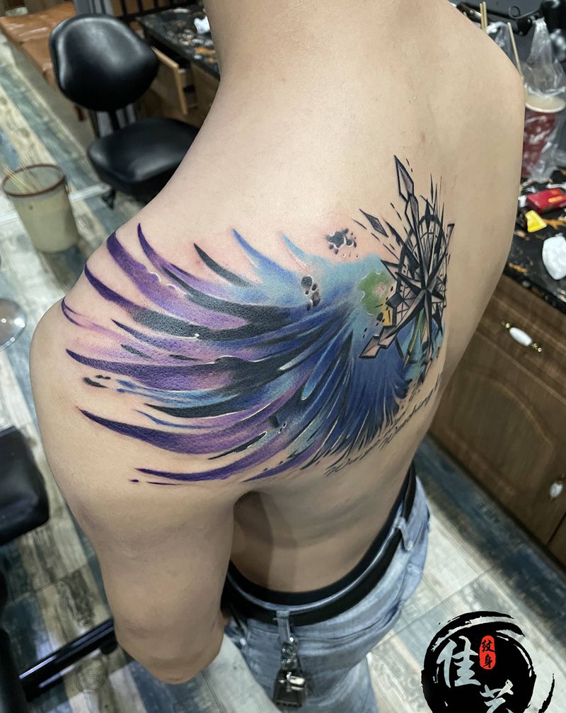 当前位置: 首页 >江苏省盐城市纹身店-佳艺纹身纹身图案>泼墨翅膀纹身图片_肩部水彩New School纹身图案