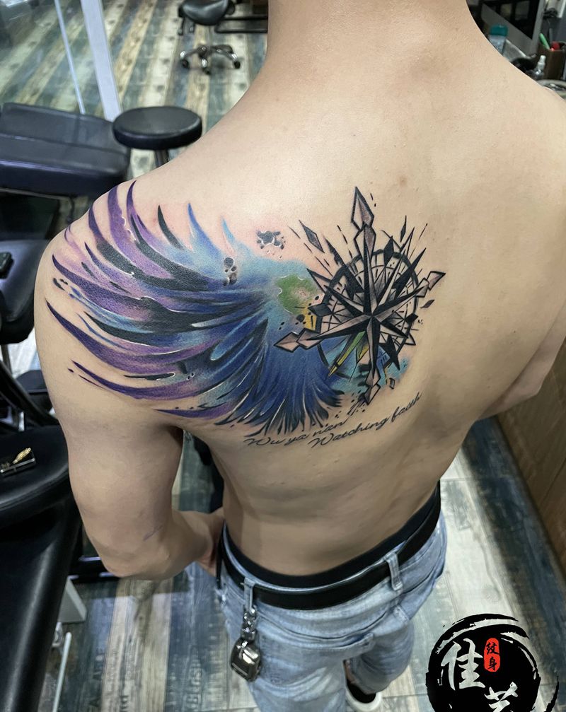 当前位置: 首页 >江苏省盐城市纹身店-佳艺纹身纹身图案>泼墨翅膀纹身图片_肩部水彩New School纹身图案