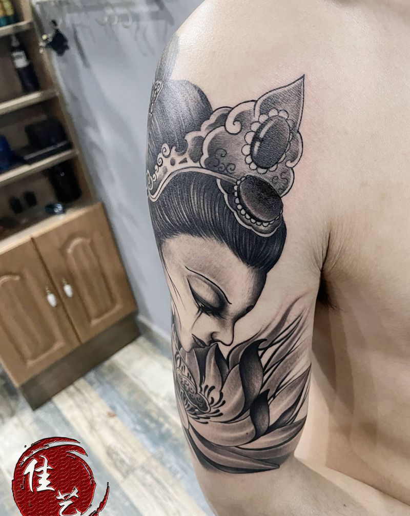 艺妓纹身图片_手臂新传统水墨纹身图案