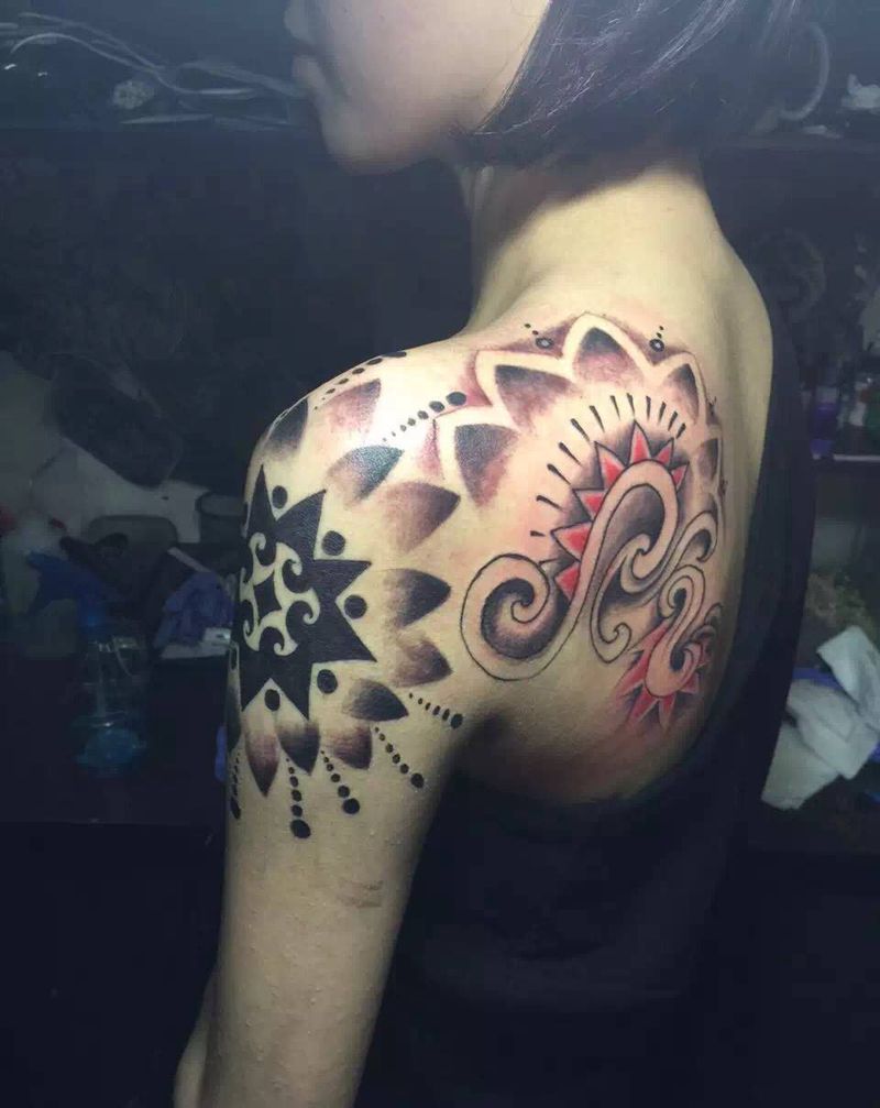 • 纹身吧推荐的披肩图腾半胛纹身图案作品展示