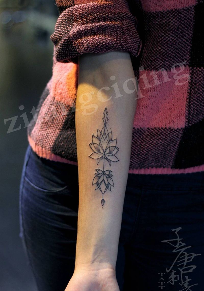 外国客人纹身图片_成品手臂欧美宗教几何植物纹身图案