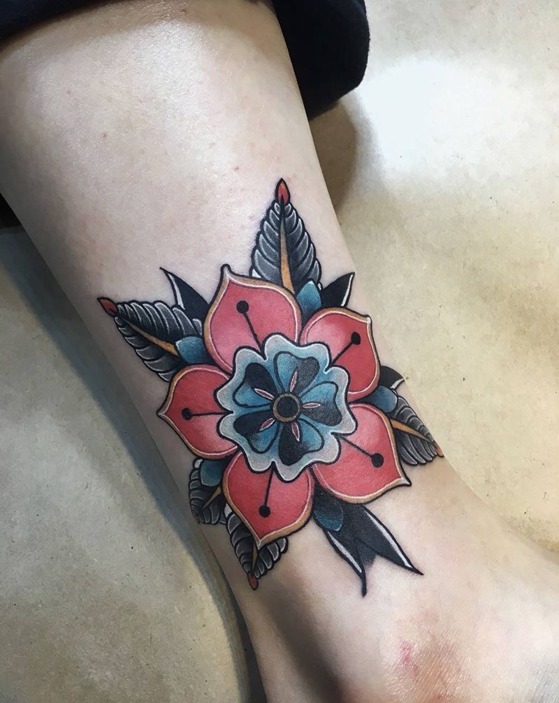 • T网红王老大花腿龙纹身图片_腿部新传统纹身图案