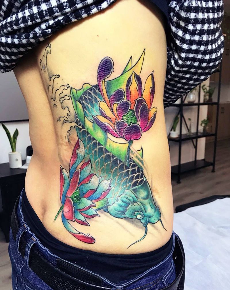 当前位置: 首页 >江苏省泰州市纹身店-颜•刺青 纹身工作室纹身图案>侧腰锦鲤纹身图片