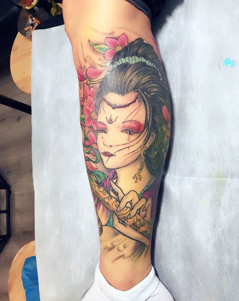 当前位置: 首页 >江苏省泰州市纹身店-颜•刺青 纹身工作室纹身图案>小腿艺妓纹身图片