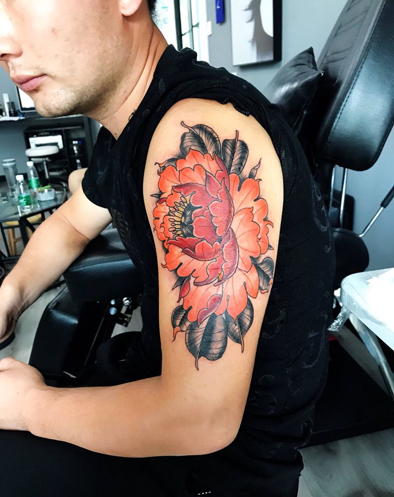 当前位置: 首页 >江苏省泰州市纹身店-颜•刺青 纹身工作室纹身图案>大臂牡丹纹身图片_手臂新传统纹身图案