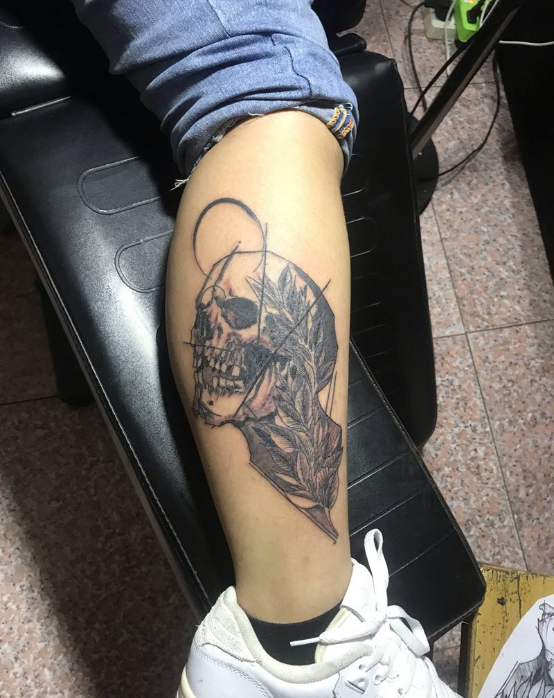 当前位置: 首页 >江苏省泰州市纹身店-绣龙堂刺青纹身图案>暗黑纹身图片_腿部New School纹身图案
