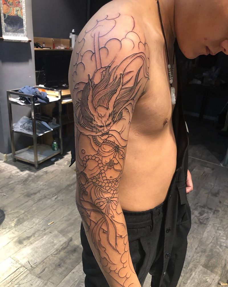 当前位置: 首页 >江苏省宿迁市纹身店-阿龙刺青纹身图案>花臂线条走一个纹身图片