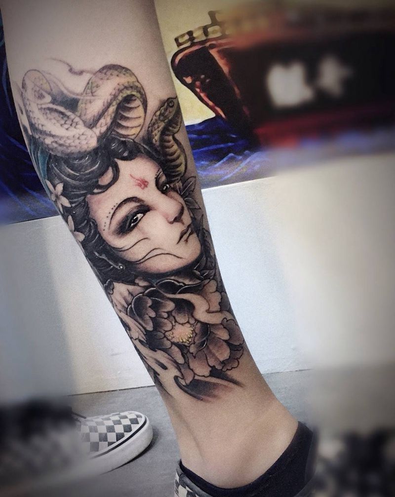 • T网红王老大花腿龙纹身图片_腿部新传统纹身图案