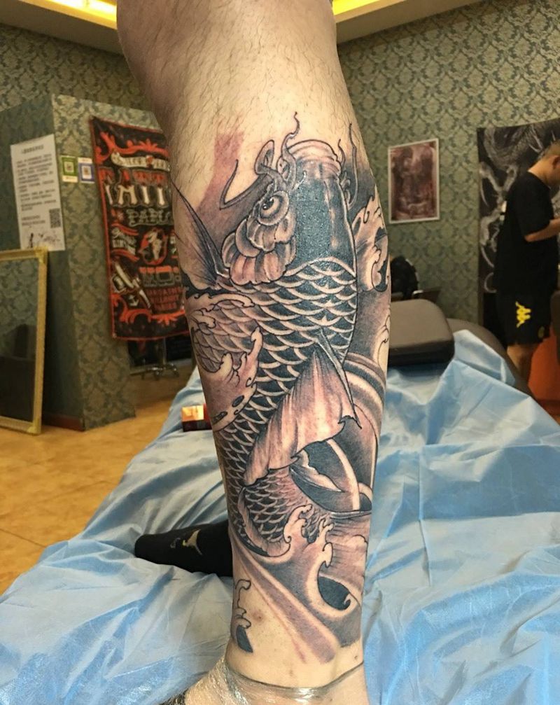 • T网红王老大花腿龙纹身图片_腿部新传统纹身图案