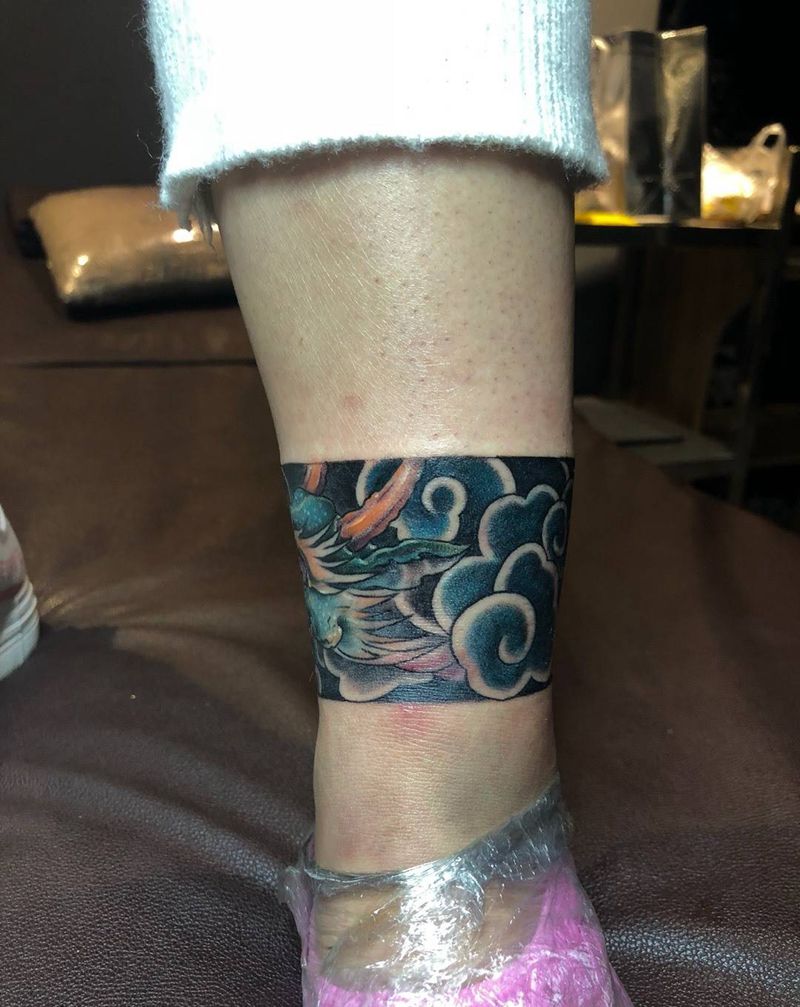 • T网红王老大花腿龙纹身图片_腿部新传统纹身图案