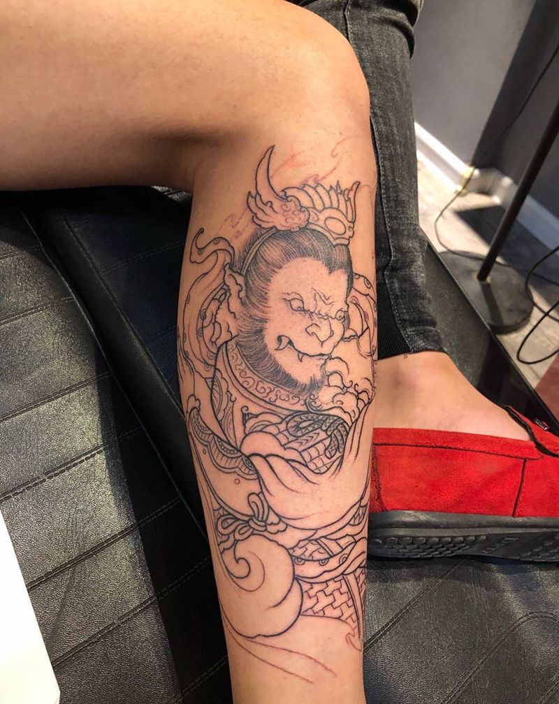 • T网红王老大花腿龙纹身图片_腿部新传统纹身图案
